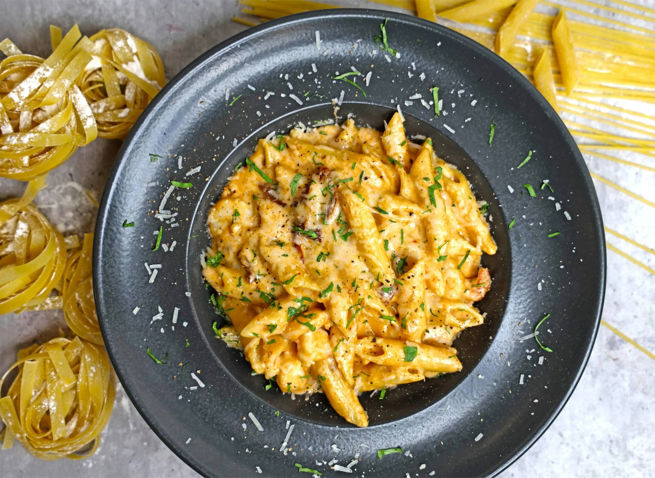 Meio pacote de macarrão tipo parafuso (250g)